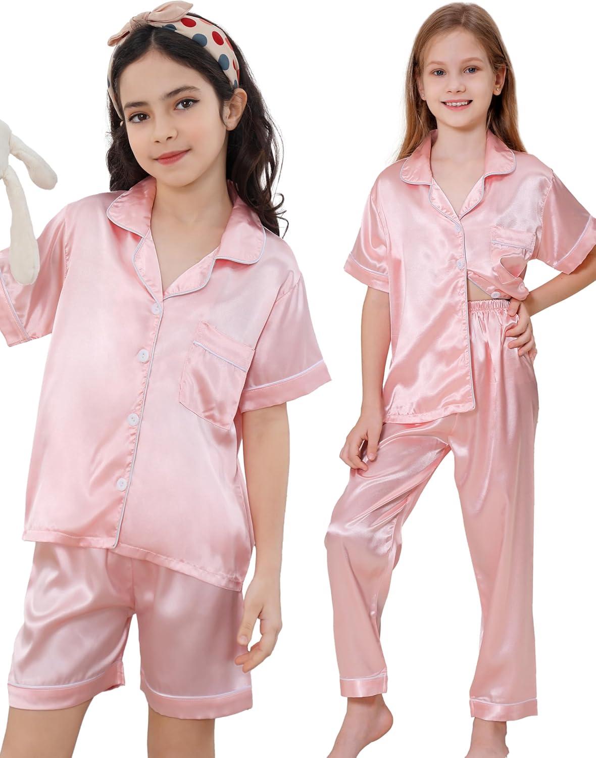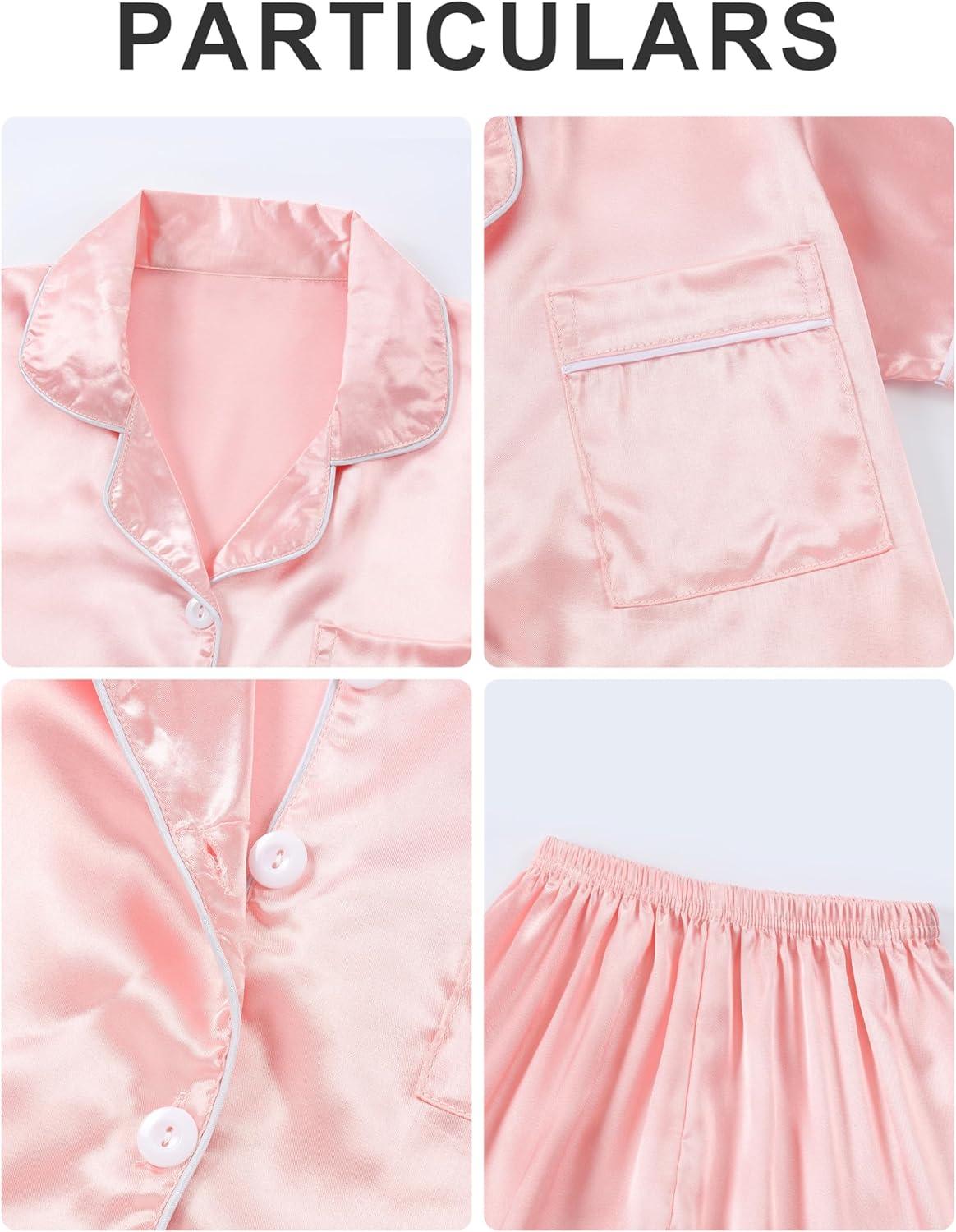 DIPUG 3 Piece Girls Silk Pajamas Set Soft Satin PJs Sleepwear for Comfortable Nights(Pink)