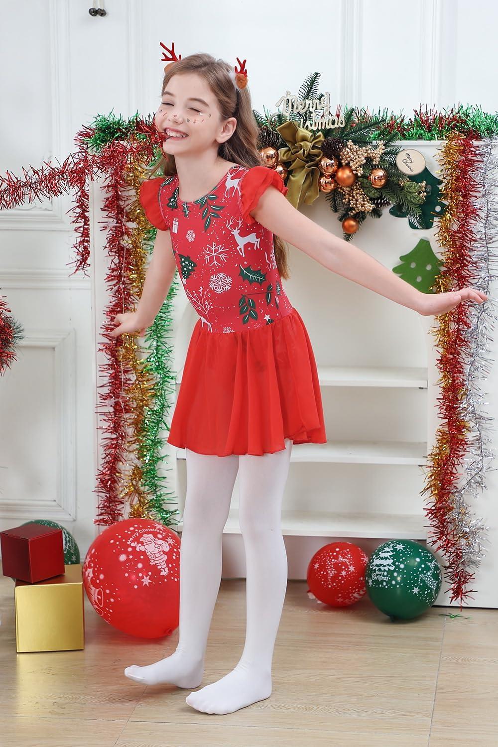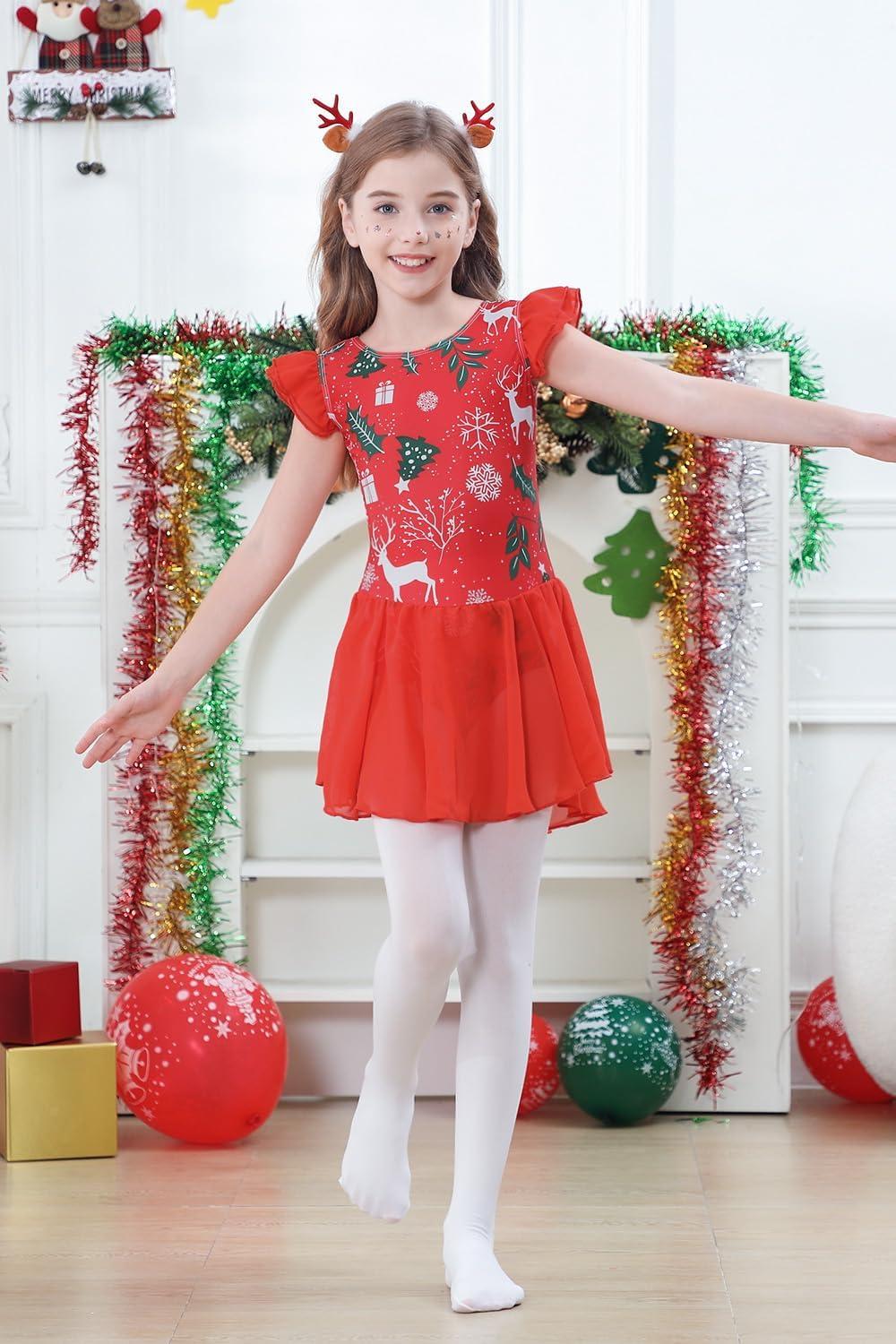 DIPUG Ballet Leotards for Girls Ballet Leotard with Skirt Toddler Dance Leotards Flutter Sleeve and Criss-Cross Back(Christmas Red)
