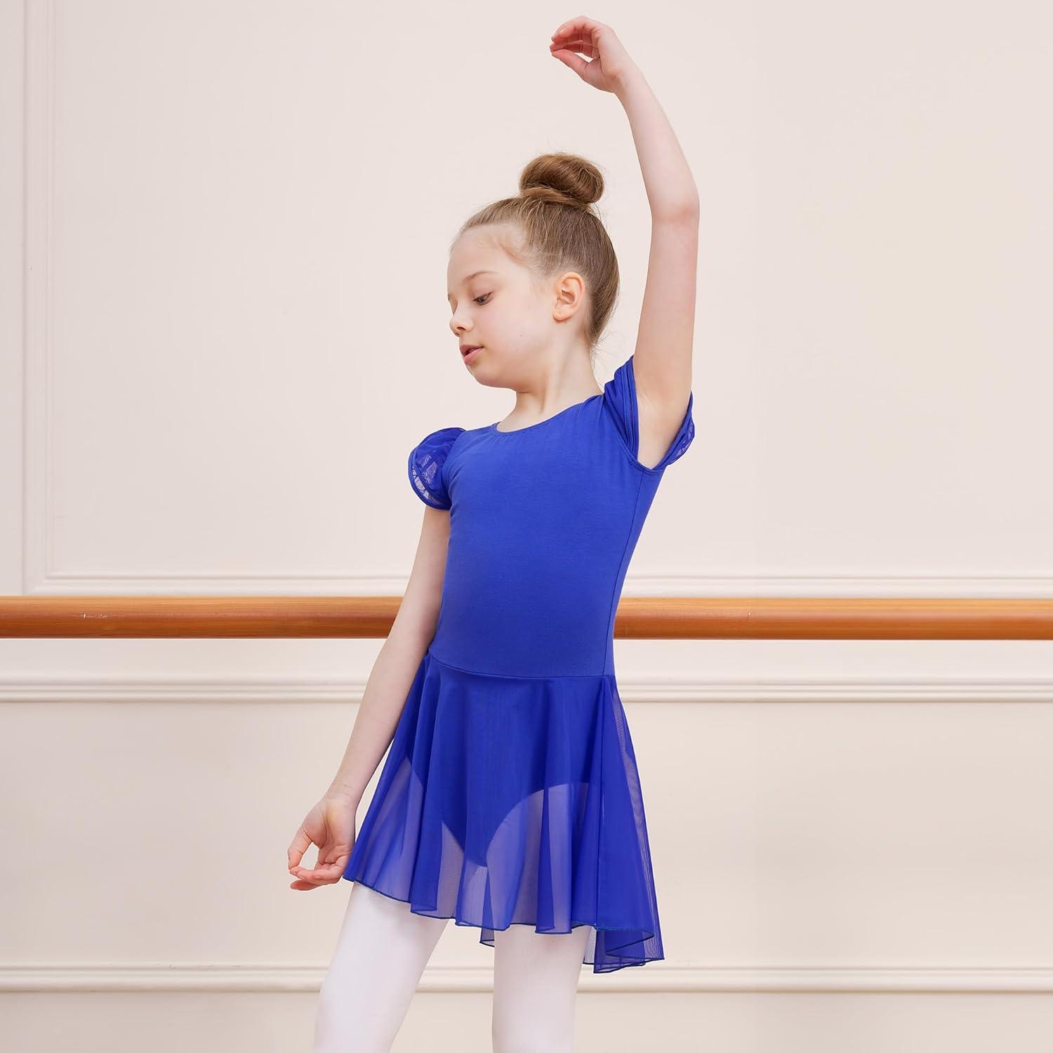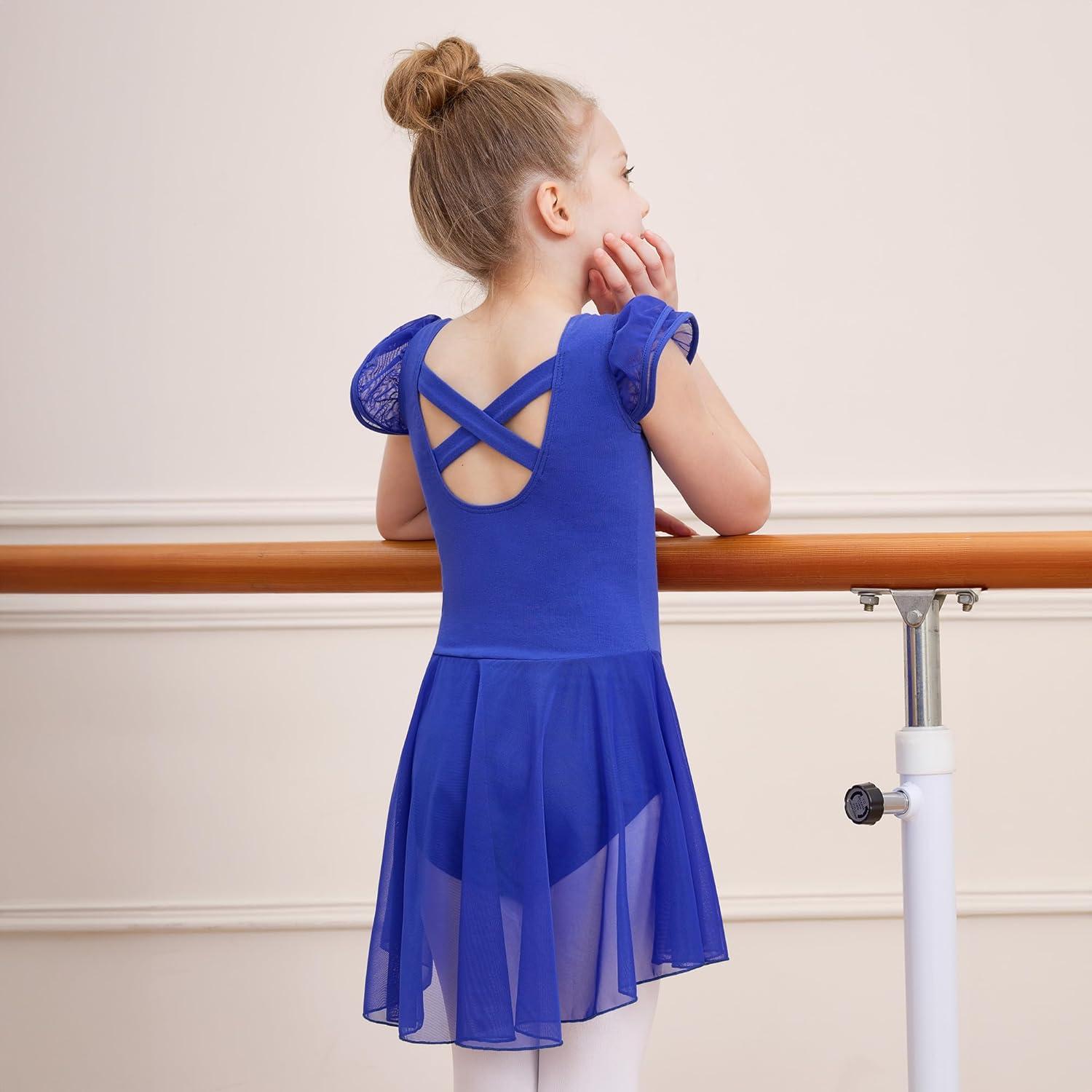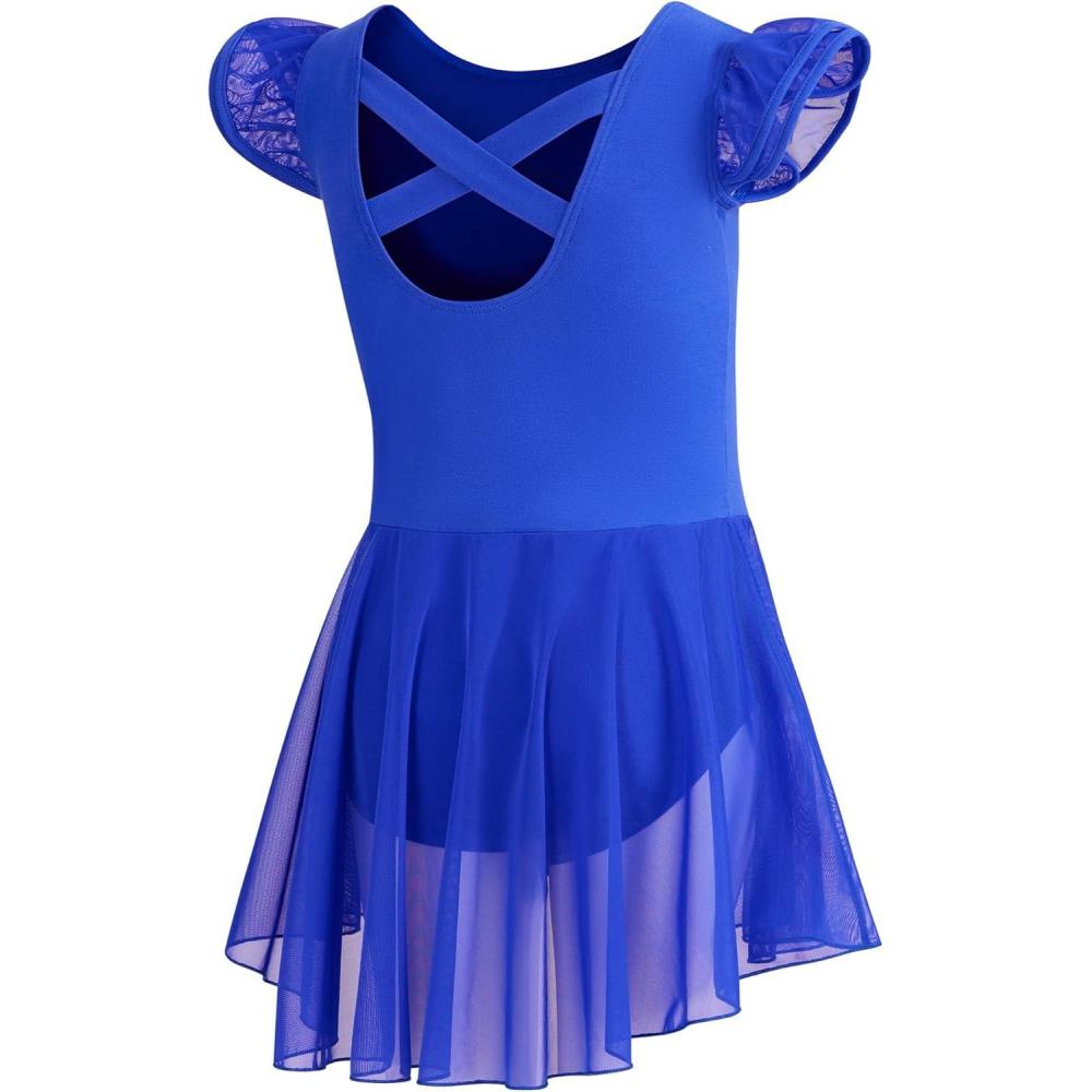 DIPUG Ballet Leotards for Girls Ballet Leotard with Skirt Toddler Dance Leotards Flutter Sleeve and Criss-Cross Back(Royal Blue)