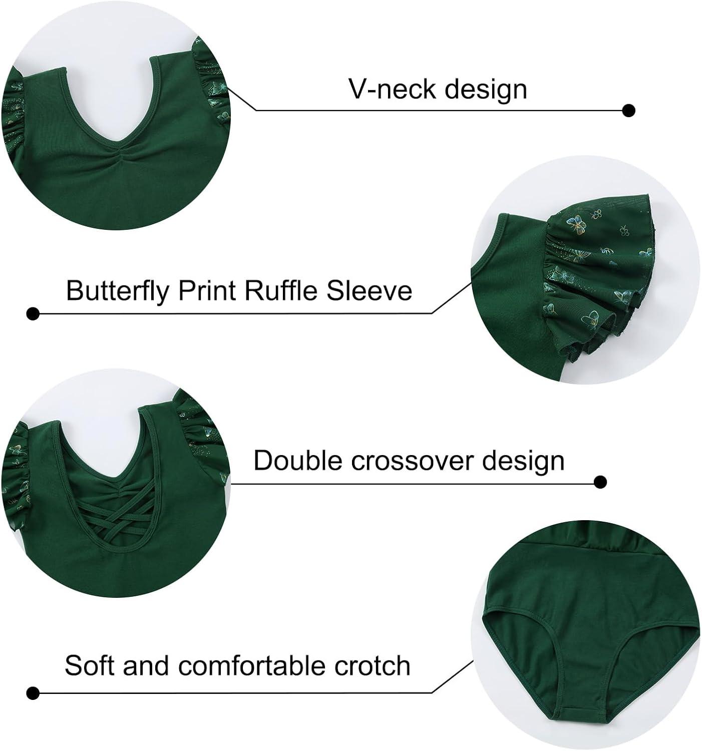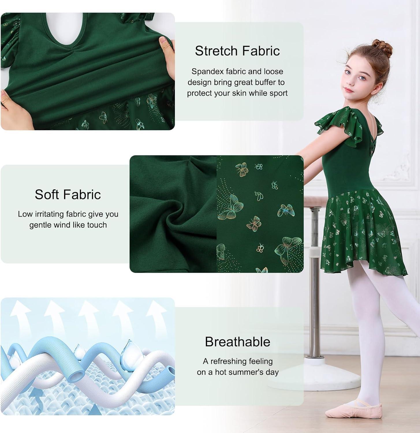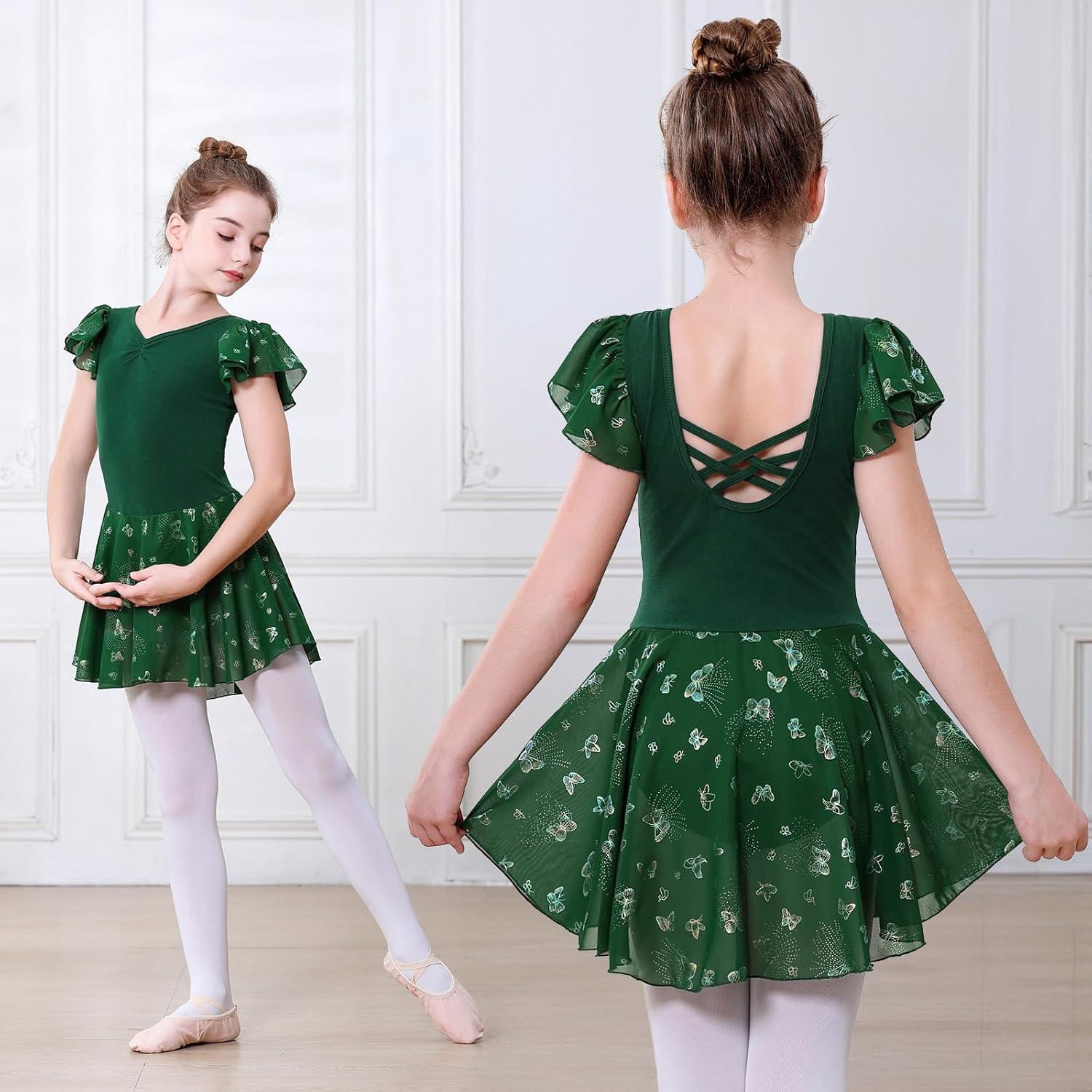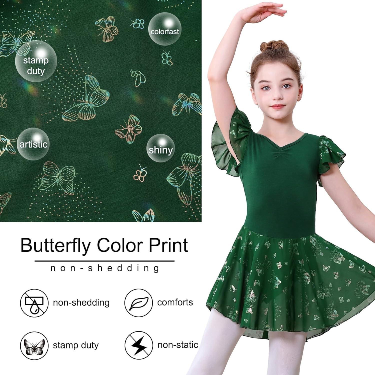 DIPUG Ballet Leotards for Girls with Skirt Shiny Toddler Dance Leotard Butterfly(Dark Green)