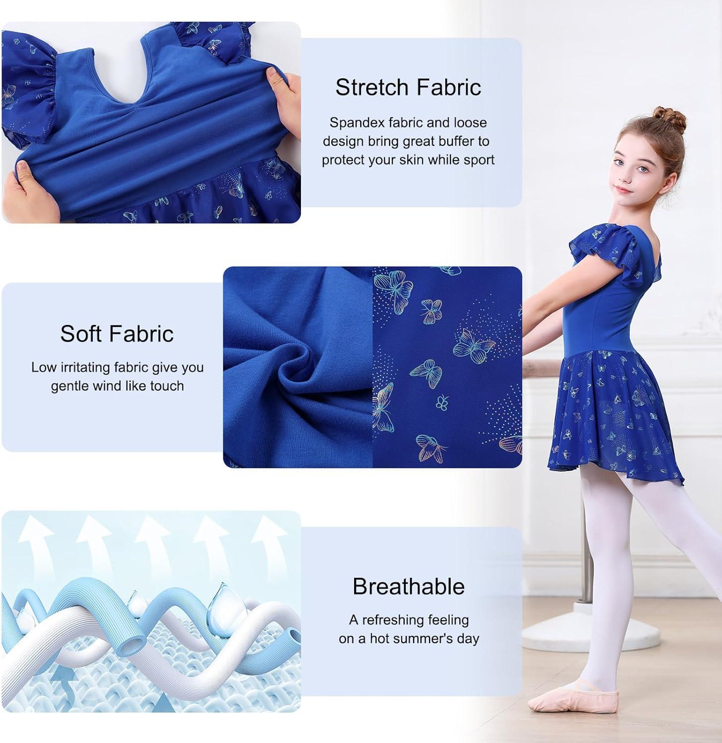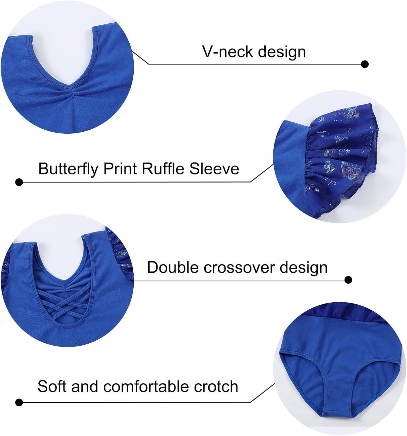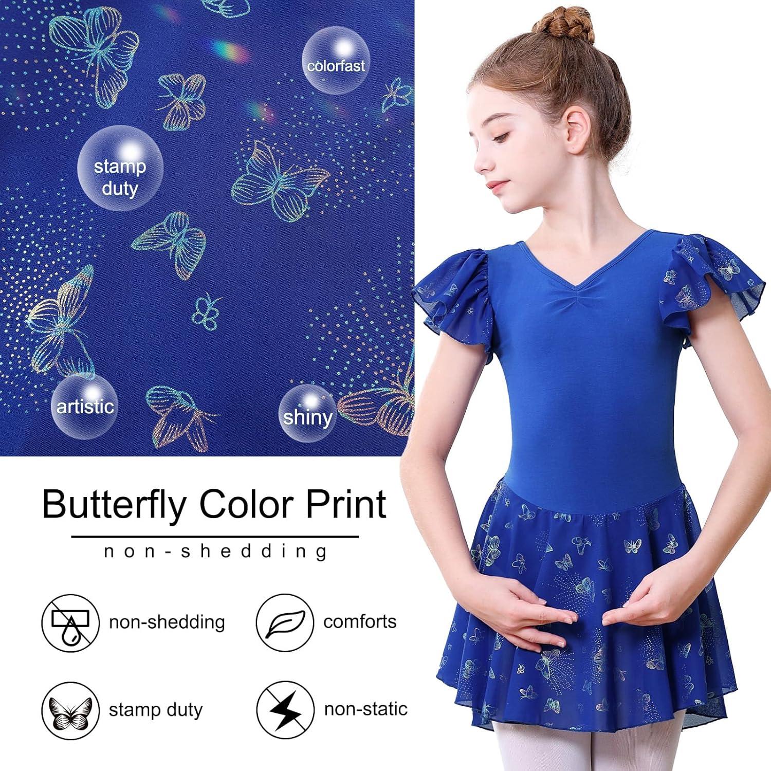 DIPUG Ballet Leotards for Girls with Skirt Shiny Toddler Dance Leotard Butterfly(Royal Blue)