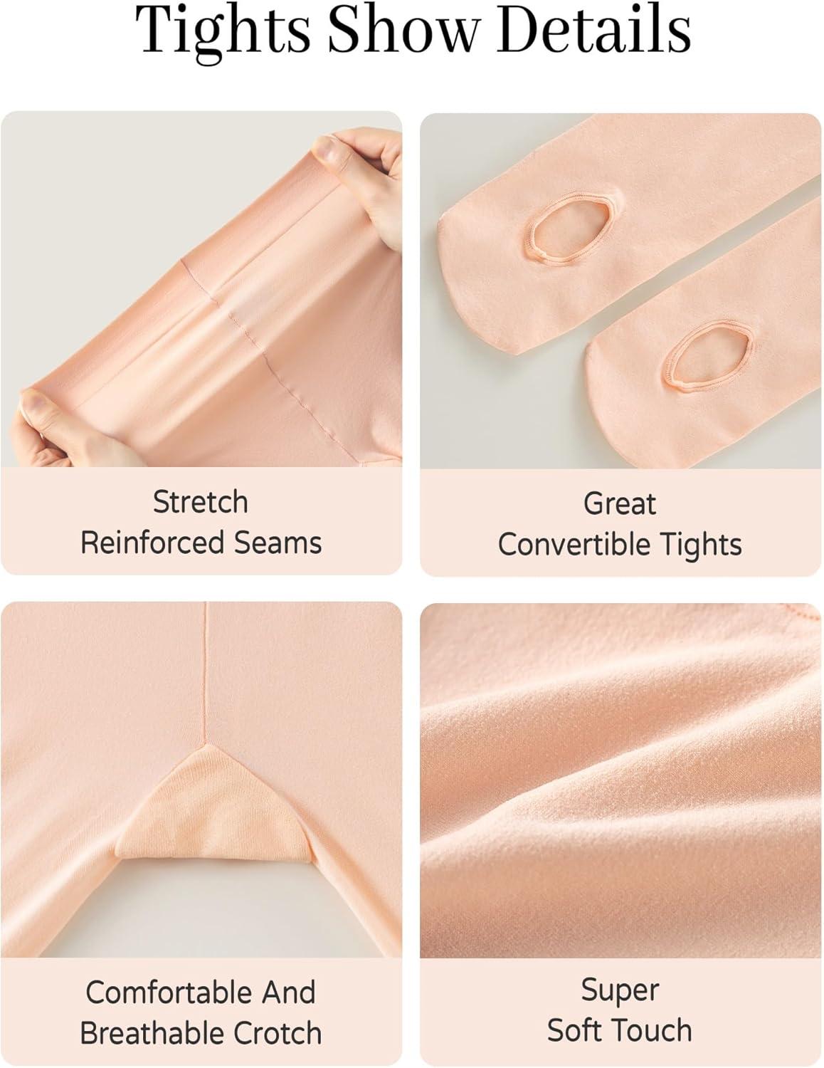 DIPUG Ballet Tights for Girls Ultra Soft Convertible Dance Tight for Kids(Ballet Pink - 1 Pack)