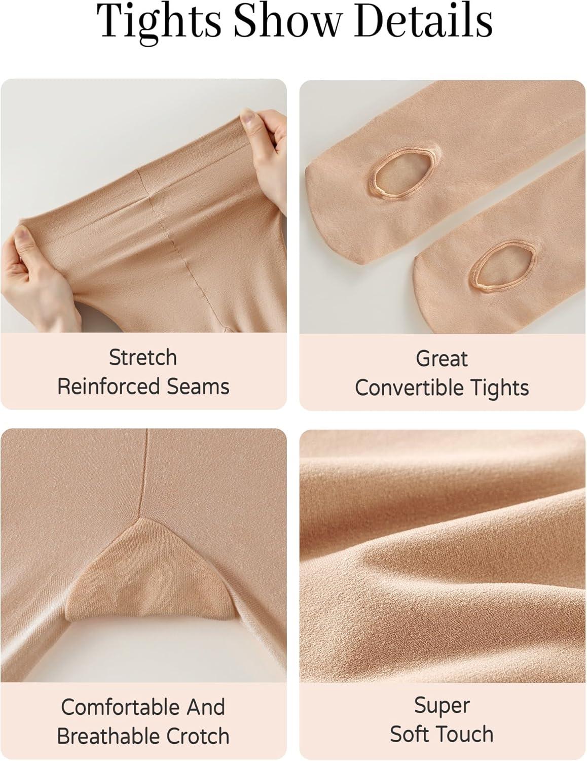 DIPUG Ballet Tights for Girls Ultra Soft Convertible Dance Tight for Kids(Light Suntan- 1 Pack)