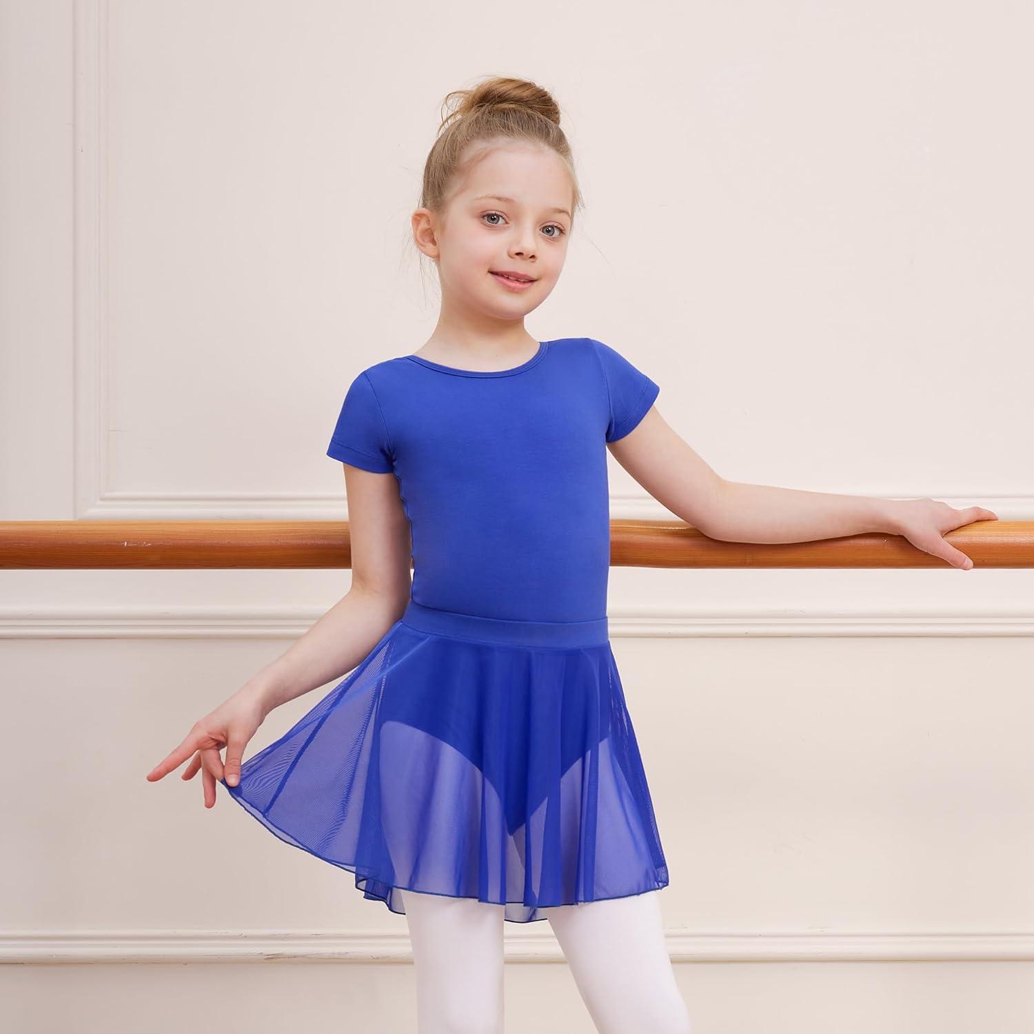 DIPUG Girls Ballet Leotards with Removable Skirt Toddler Hollow Back Dance Dress Combo(Royal Blue)