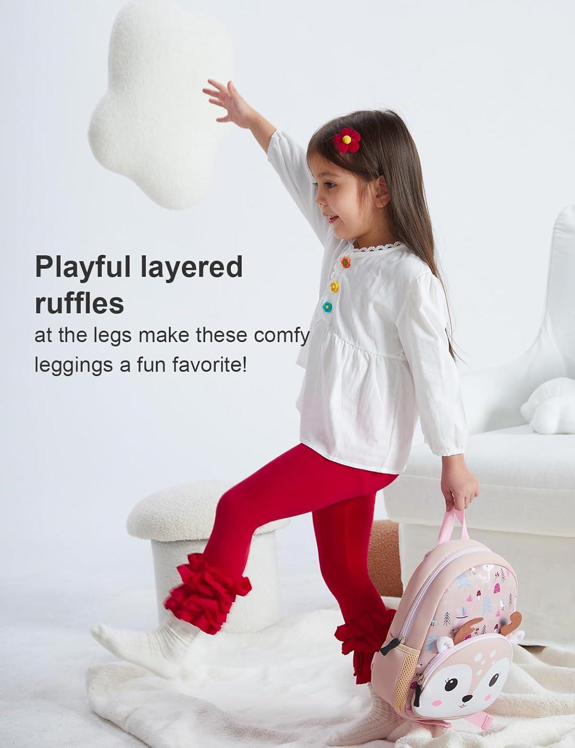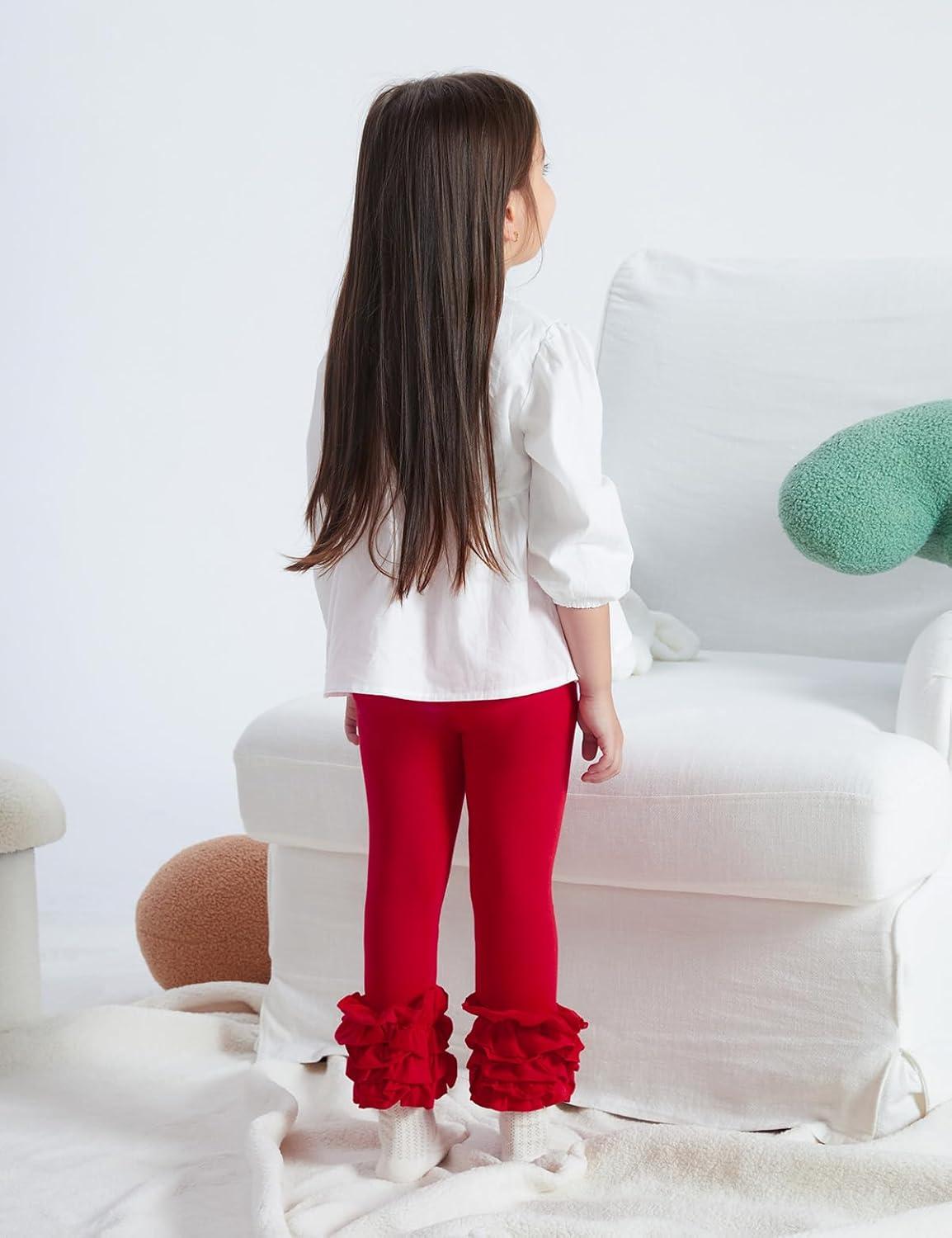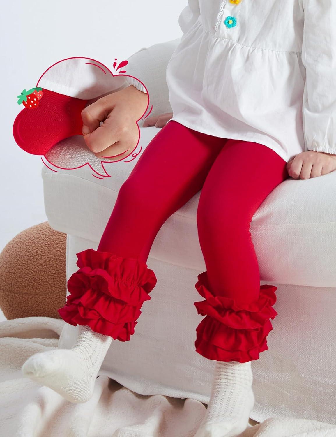 DIPUG Toddler and Baby Girls Leggings Ruffle Pants Little Kids Legging 6M-6T(Red)