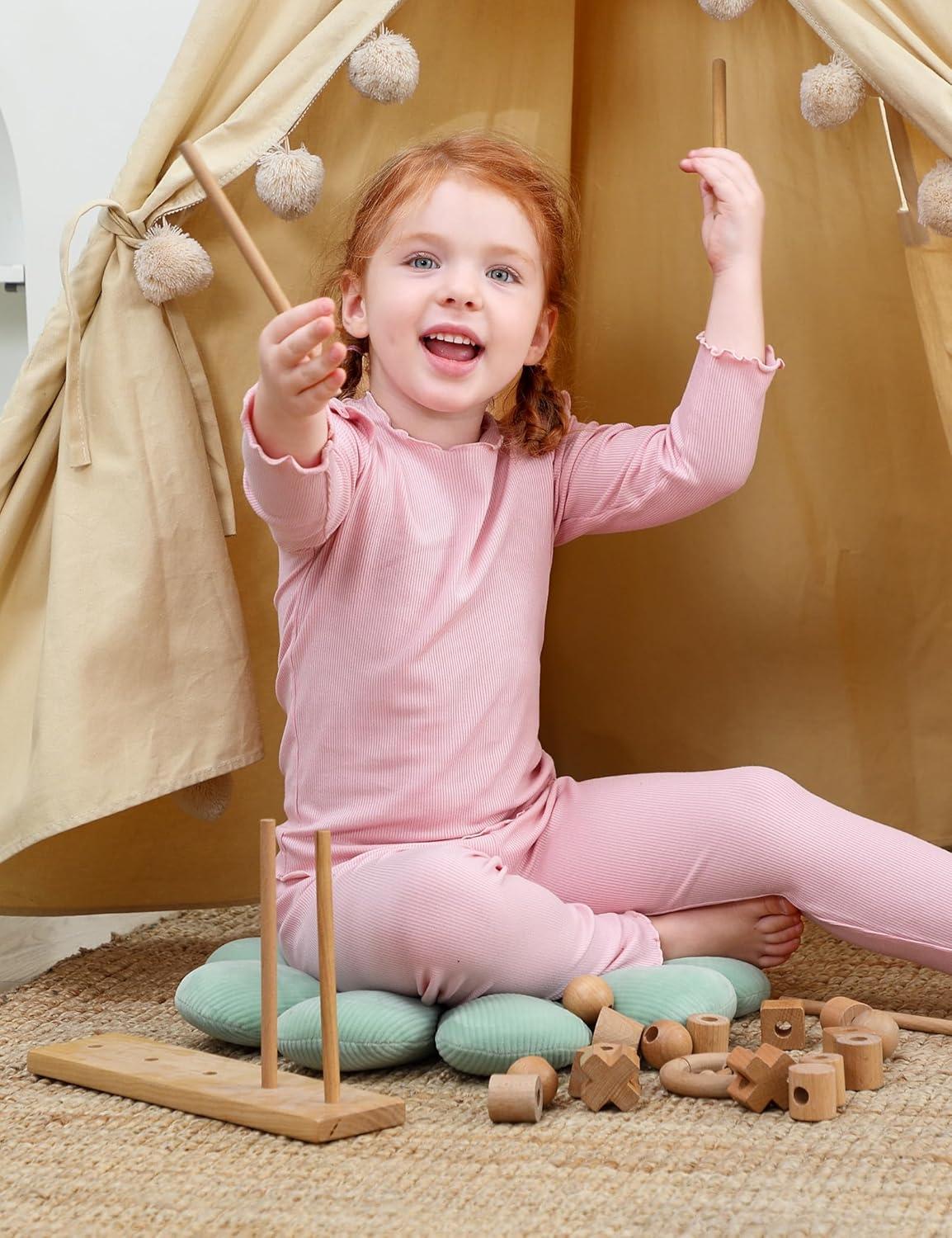 DIPUG Toddler Baby Pajamas Long Sleeve Ruffle Pajama Set for Girls Kids Solid Pjs Soft Sleepwear 12M-7Y(Pink)