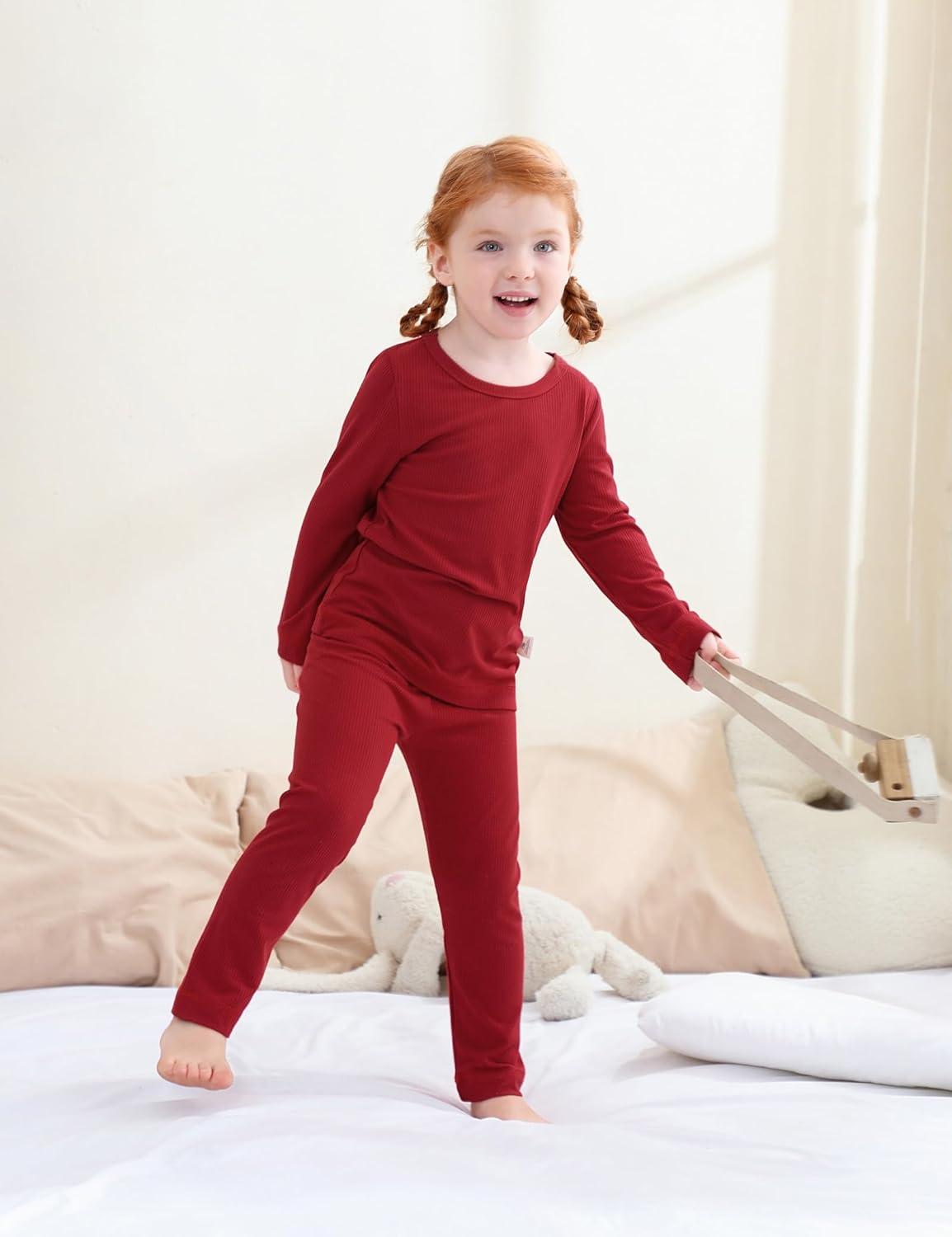 DIPUG Toddler Pajamas Long Sleeve Pajama Set for Kids Girls Pjs Boys Solid Soft Sleepwear 12M-7Y(Maroon)